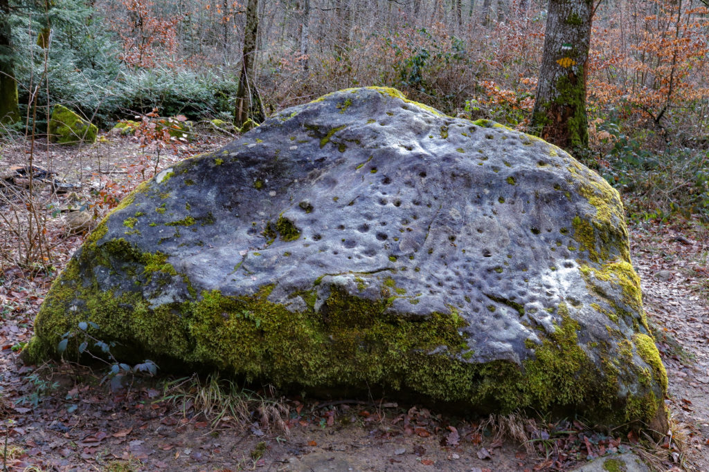 Dans ce cadre, le cromlech de La Praz peut être compris comme un point d’ancrage, où la géométrie construite vient se superposer à une géométrie du terrain. La pierre à cupules, en particulier, agit comme une surface de médiation : elle capte, concentre et redistribue l’attention, le geste, peut-être l’eau ou la lumière, sans que son usage exact puisse être réduit à une seule fonction.